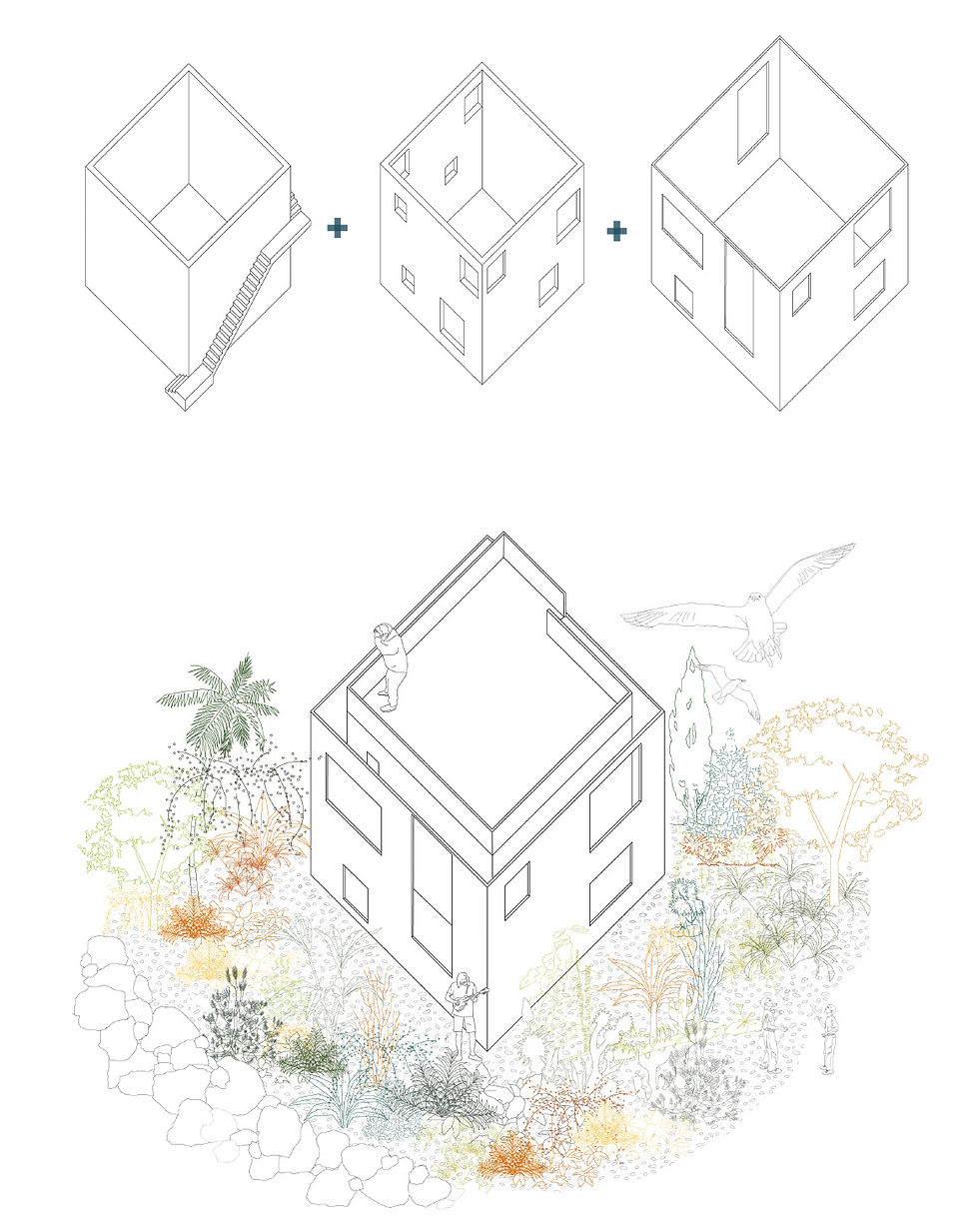 L'edificio si pone come un tassello di una nuova architettura e avvia la riflessione sul tema del rapporto funzionale e spaziale tra i diversi elementi del sito, attraverso un nuovo modo di vivere che raccoglie le azioni quotidiane individuali e collettive. Vivere un luogo significa creare una relazione con il contesto; per questo motivo la scelta progettuale è stata quella di un edificio a "doppia pelle" che crea una connessione graduale tra lo spazio interno ed esterno.